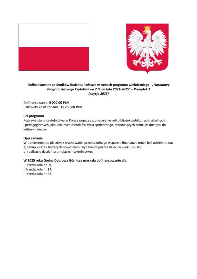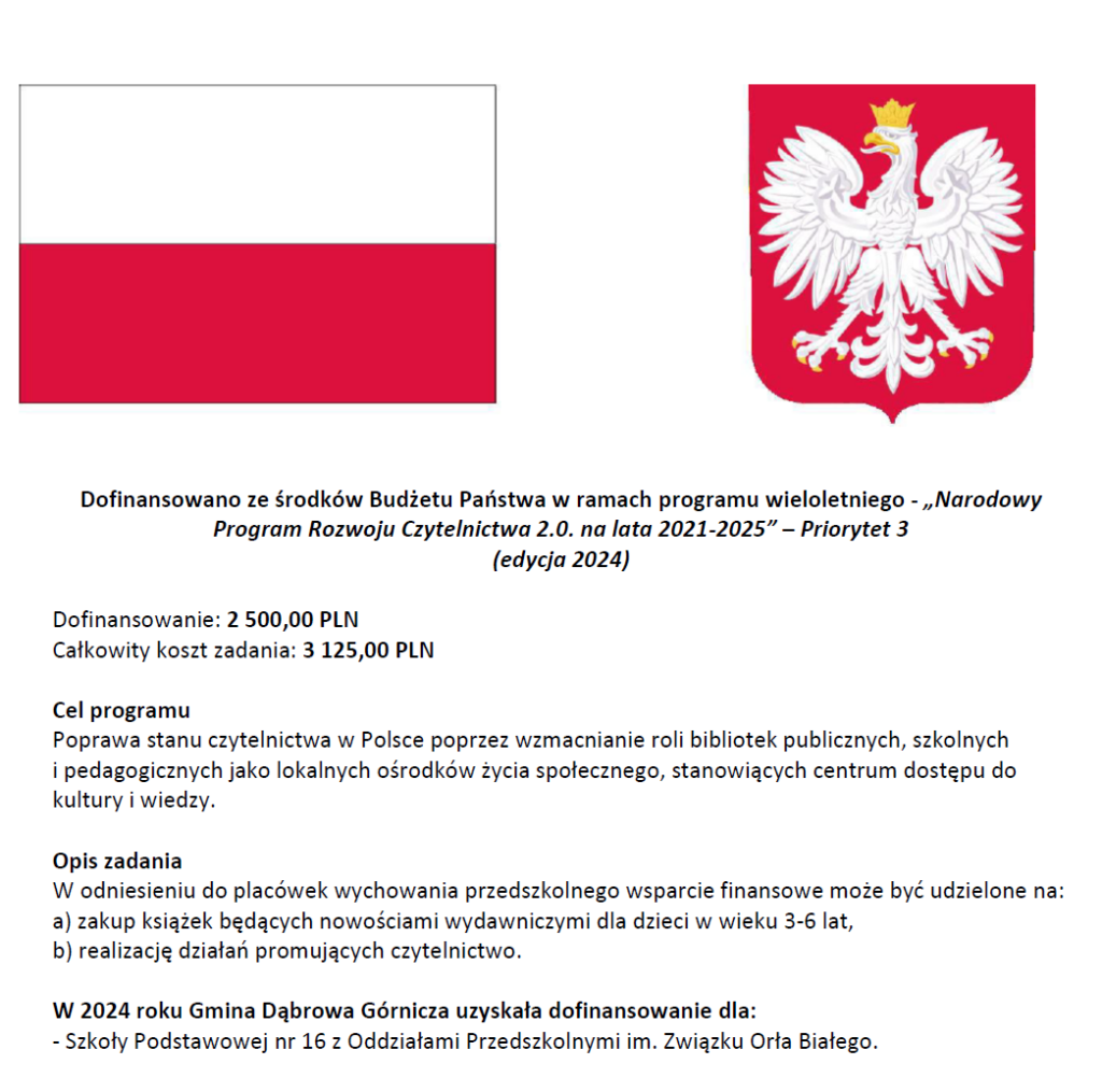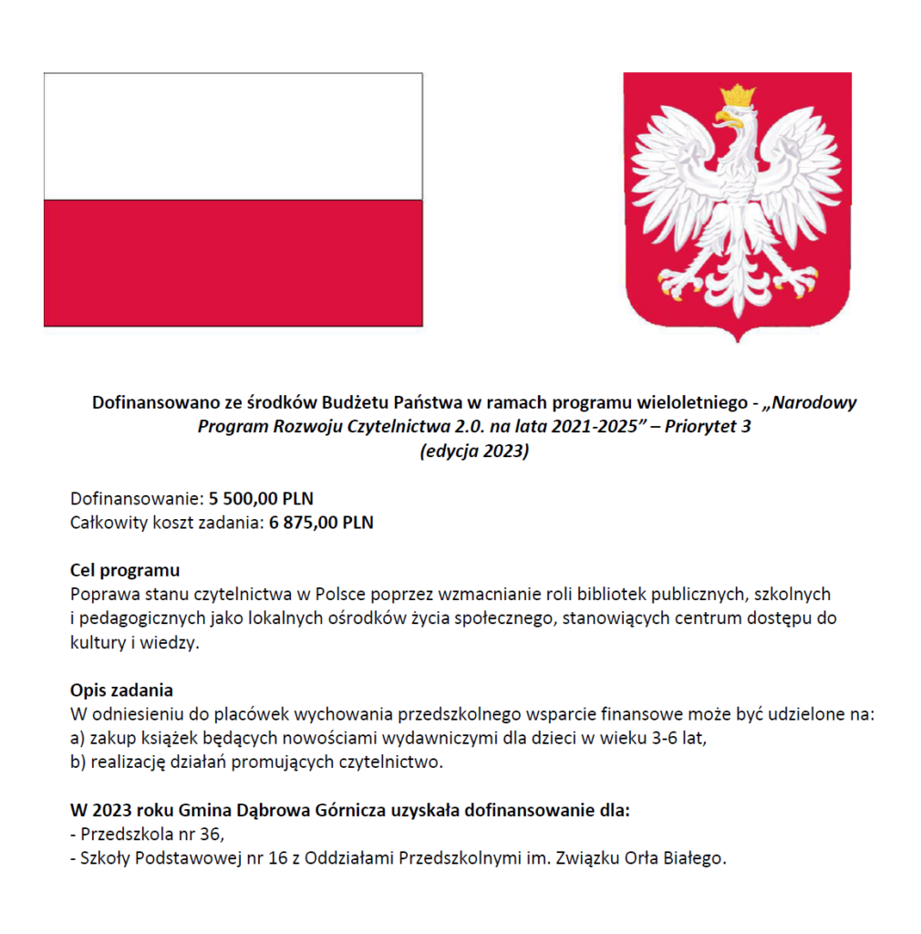 W 2022 roku Gmina Dąbrowa Górnicza uzyskała dofinansowanie w wysokości 250 838,40 PLN, w tym: